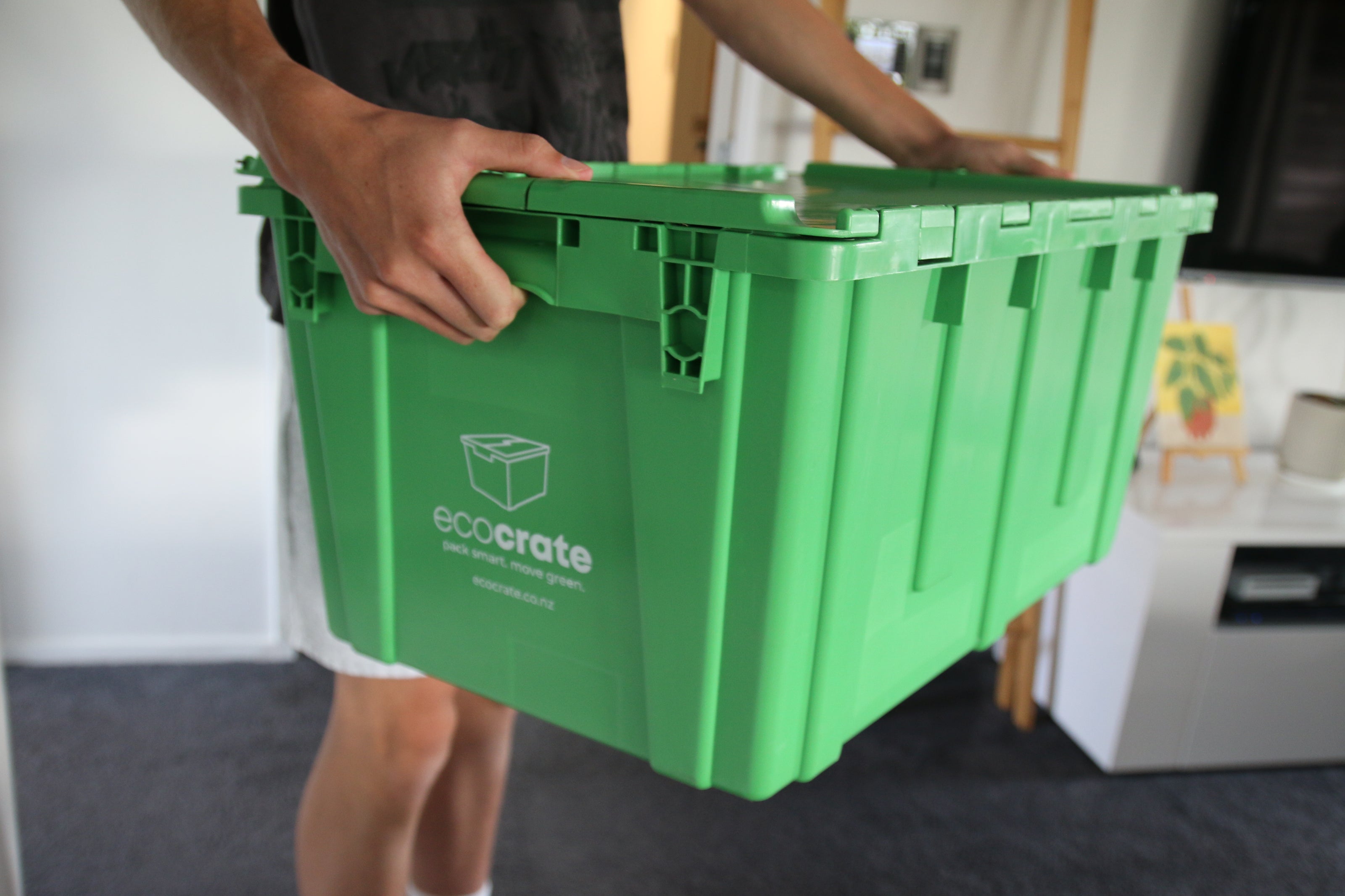 Reusable moving crates that make packing easier, greener, and faster — no tape, no mess, no waste.